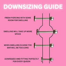 Na het zetten van een piercing wordt vaak een iets langer staafje geplaatst. Dit is bewust gedaan om ruimte te geven voor zwelling. Na een aantal weken is het belangrijk om te downsizen.